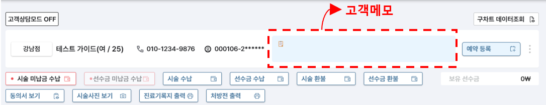 입력 시, 고객 상세 페이지 상단 영역에 표기됩니다.