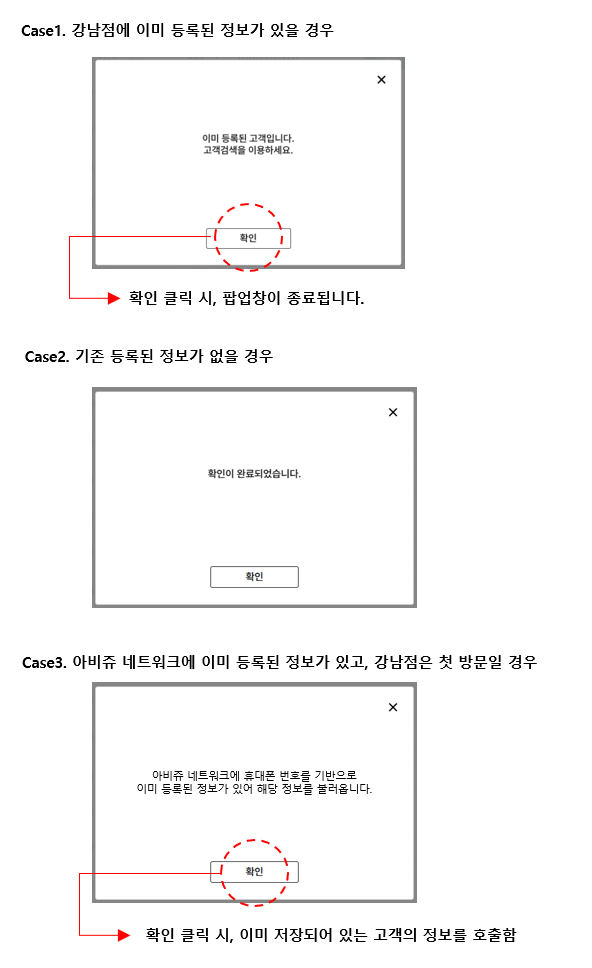 버튼 클릭 시, 아비쥬 네트워크에 등록된 고객 정보가 있을 경우, 이미 저장된 고객의 정보를 불러옵니다.