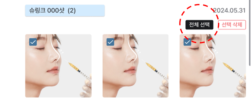 [전체 선택] 버튼 클릭 시, 해당 폴더의 사진 리스트 전체가 선택 됩니다.