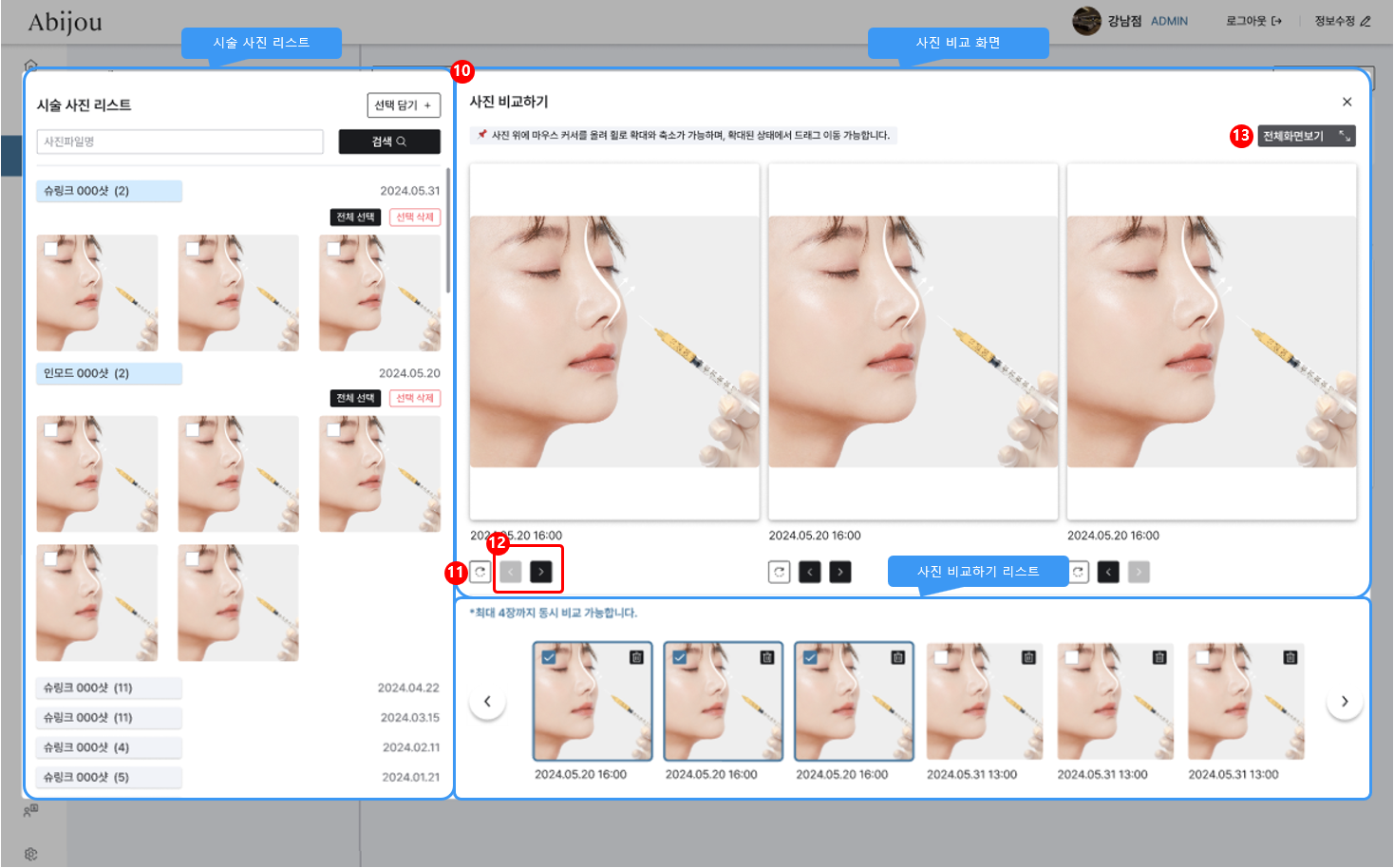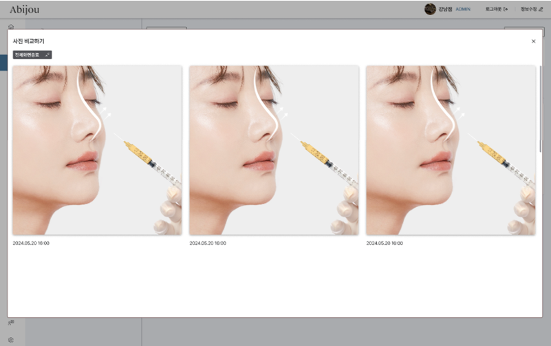 [화면명 : 시술사진 리스트 팝업창 – 사진 선택 후 비교하는 화면안]
