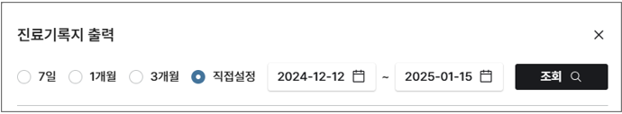 버튼 클릭 시, 진료기록 출력 팝업창이 호출됩니다.