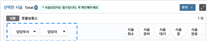 ▶ [차트>접수현황>시술탭>선택한 시술] 시술 담당자 선택