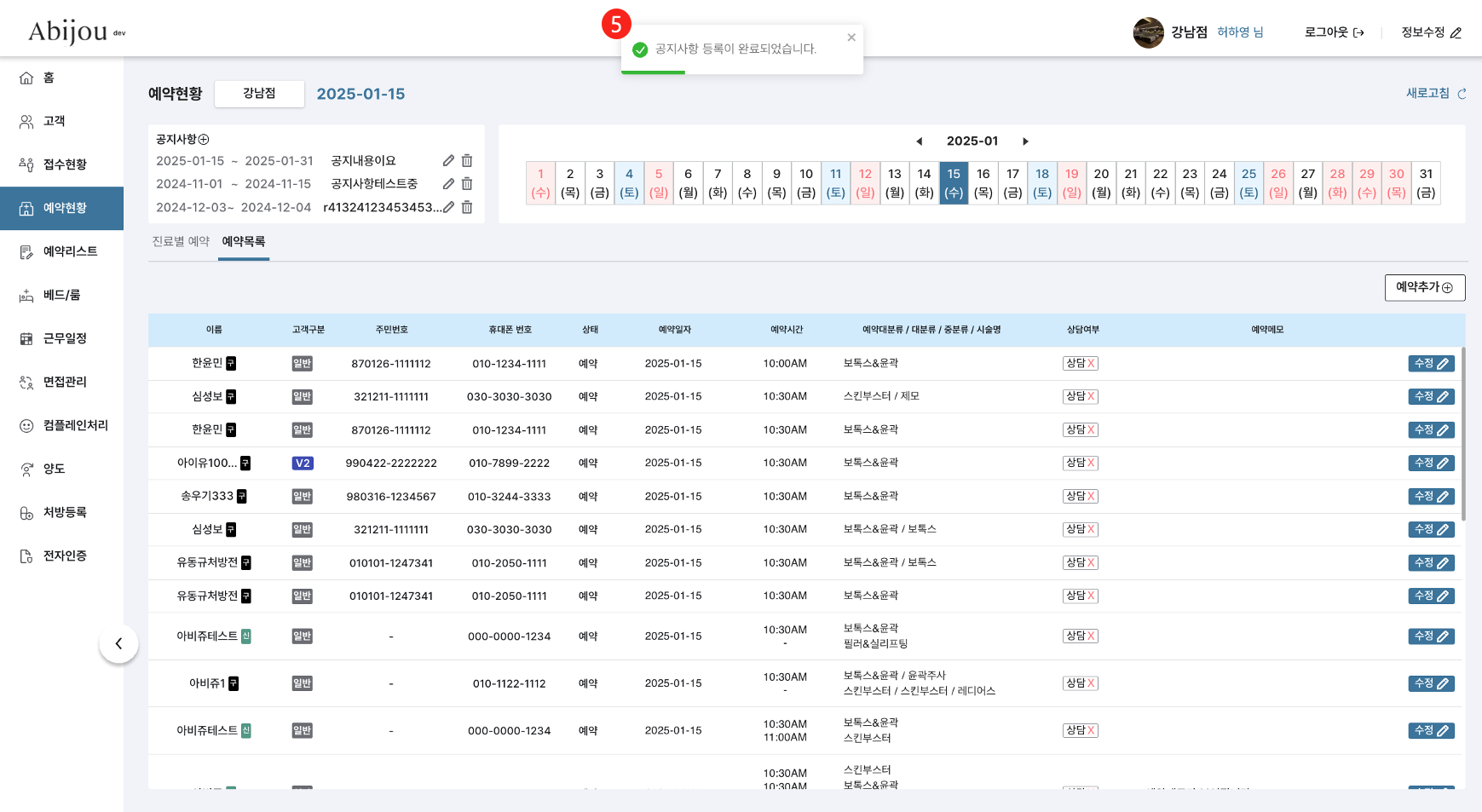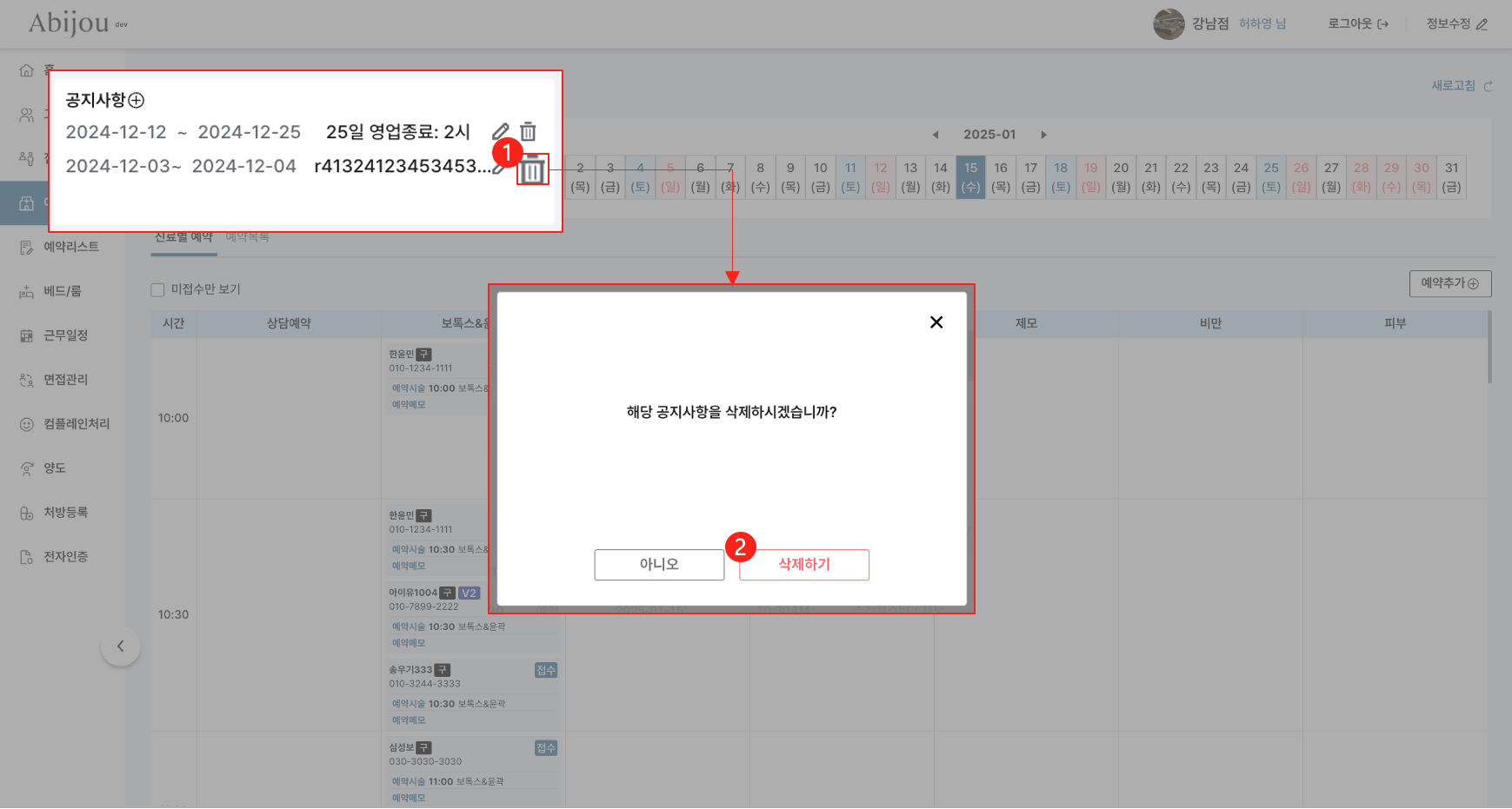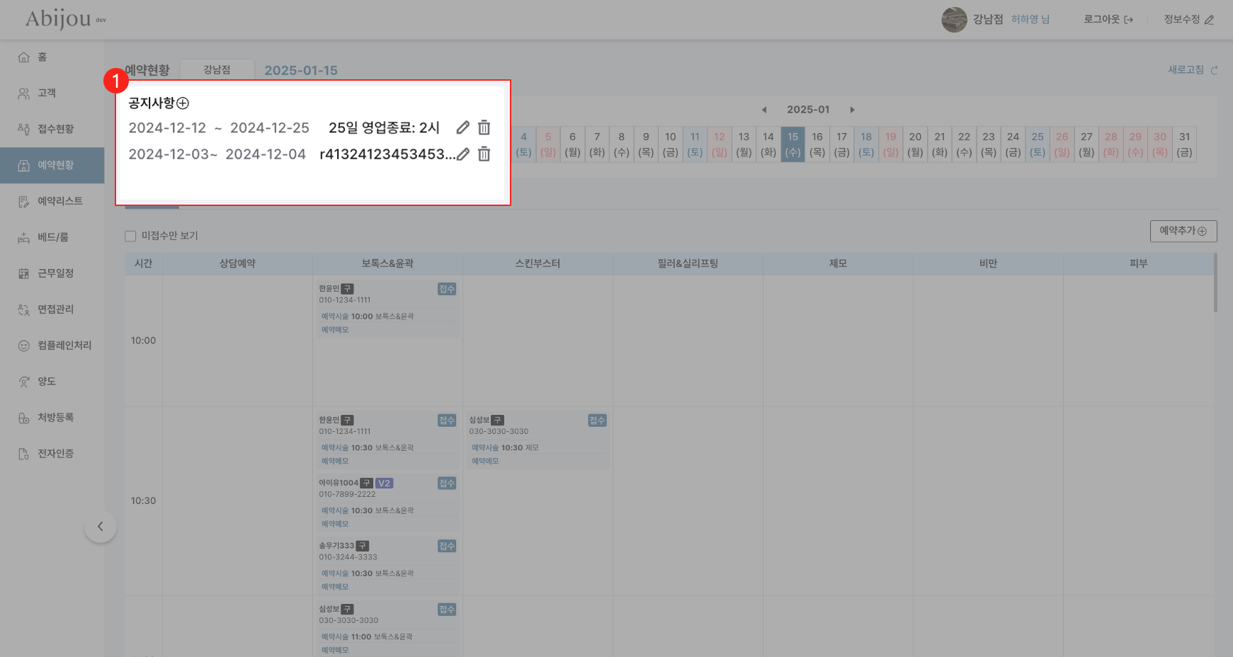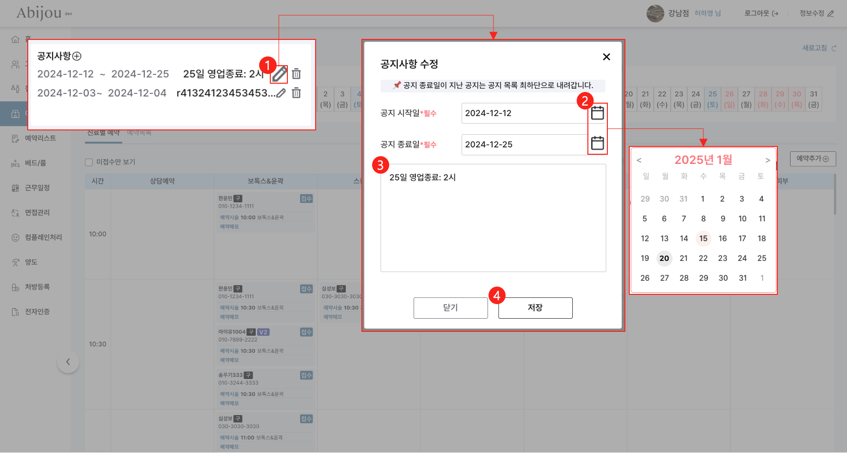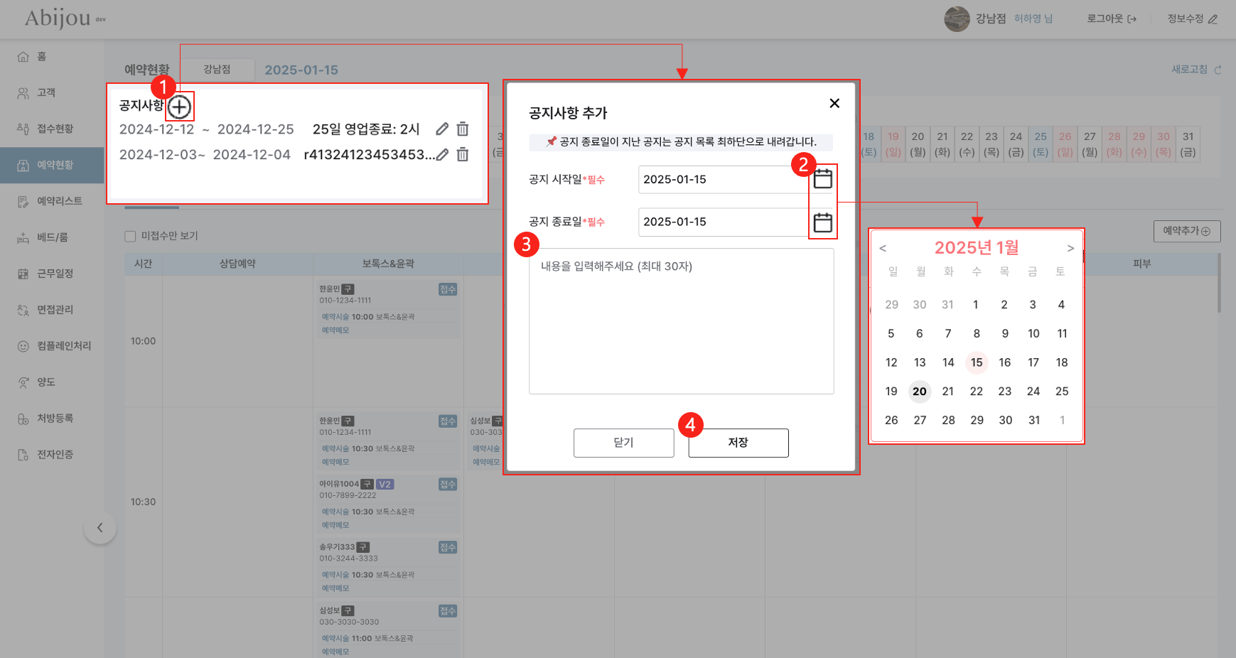지점 내에서 공유가 필요한 예약과 관련된 공지사항을 등록할 수 있습니다.