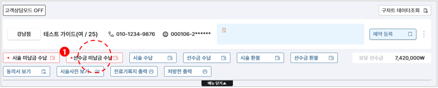 선수금 미납금이 있는 경우 해당 버튼이 활성화됩니다.