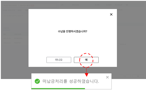 수납를 원할 경우 [예]를, 원하지 않을 경우 [아니오]를 클릭해주세요.