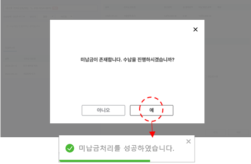 ▶ 미납 금액 : 미납되어 수납이 필요한 총 금액