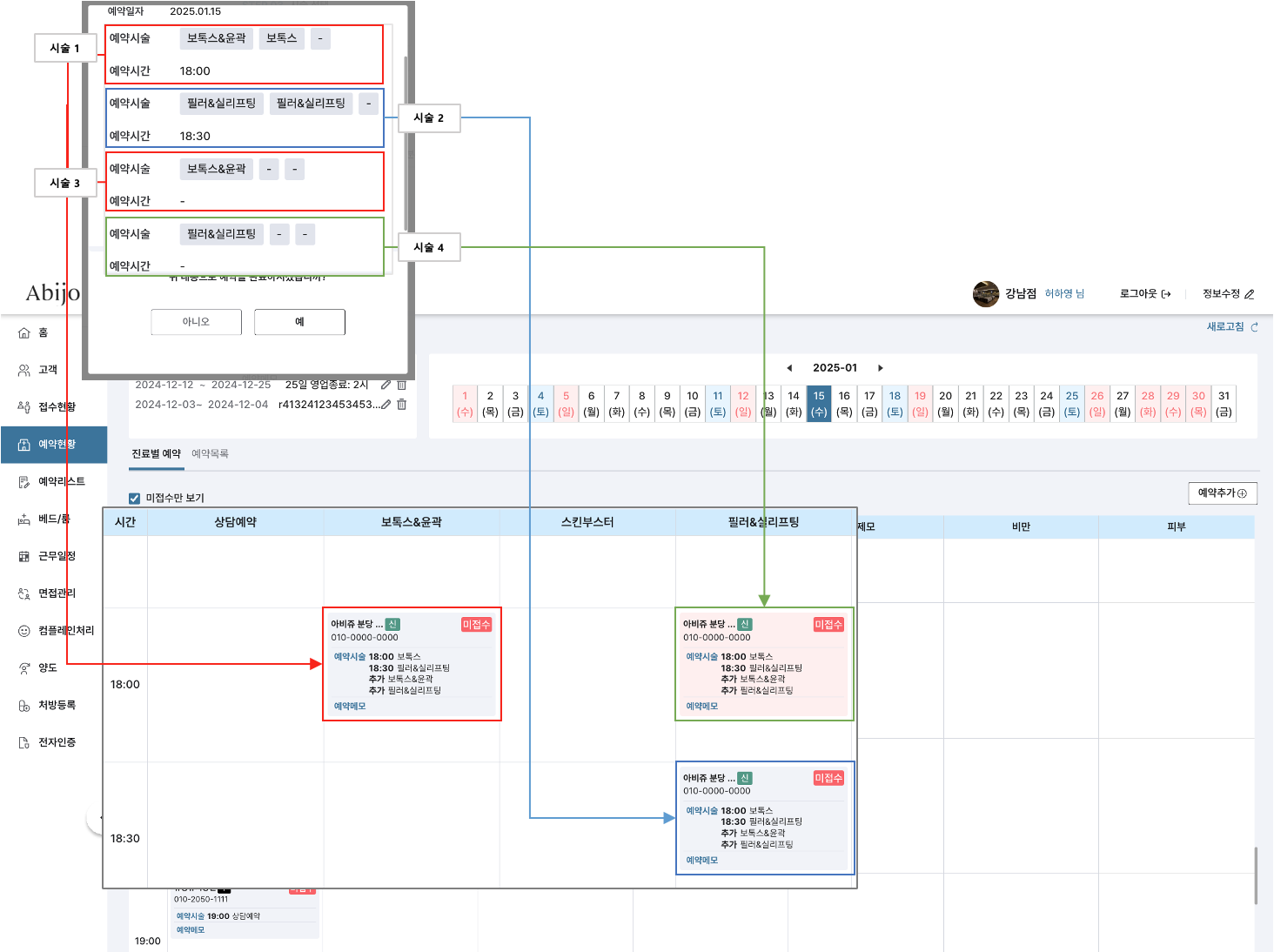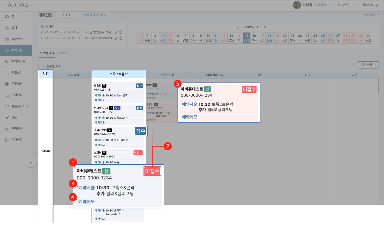 → 예약대분류 선택 + 시술명 (필러이름) 입력.