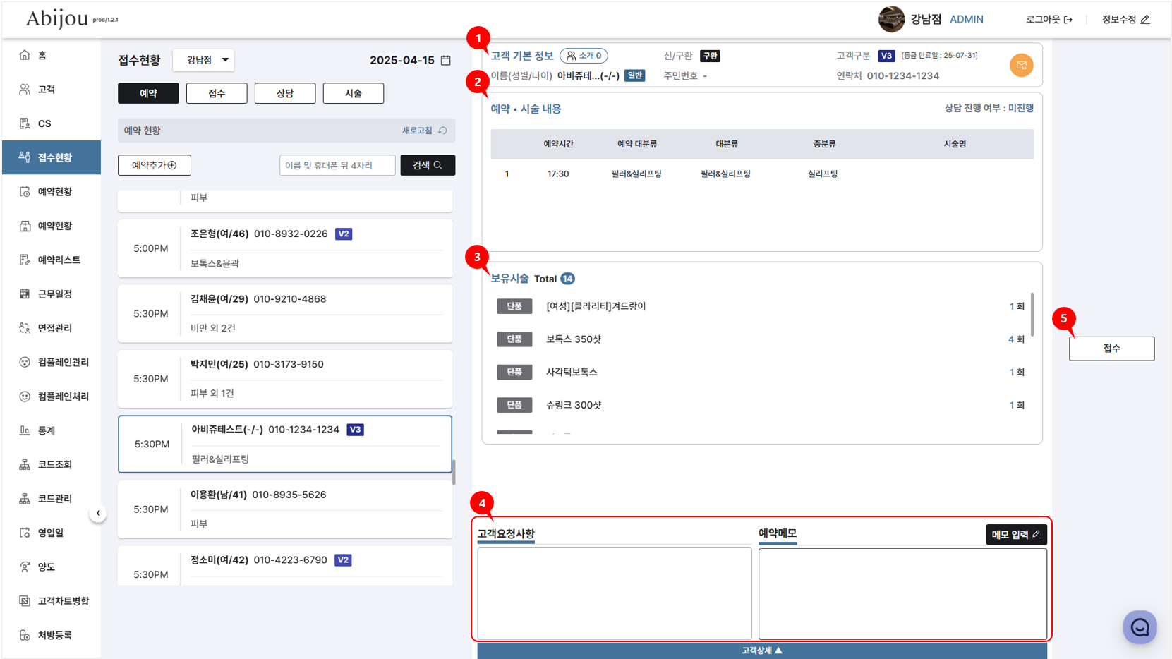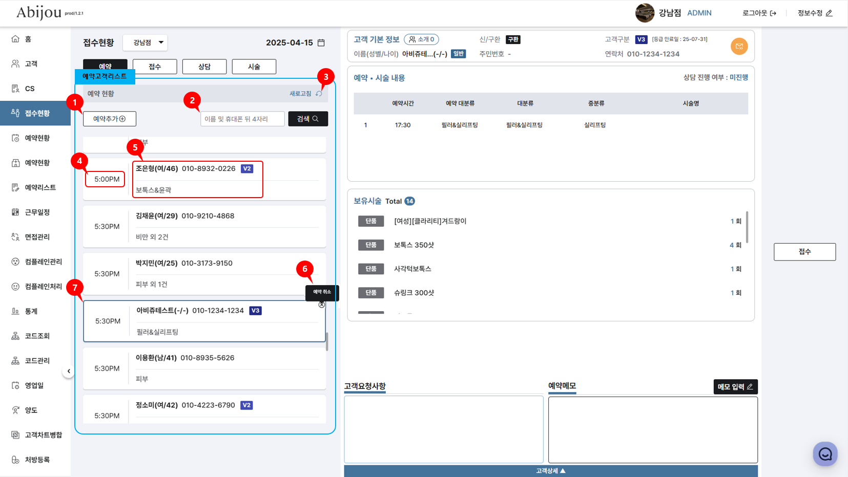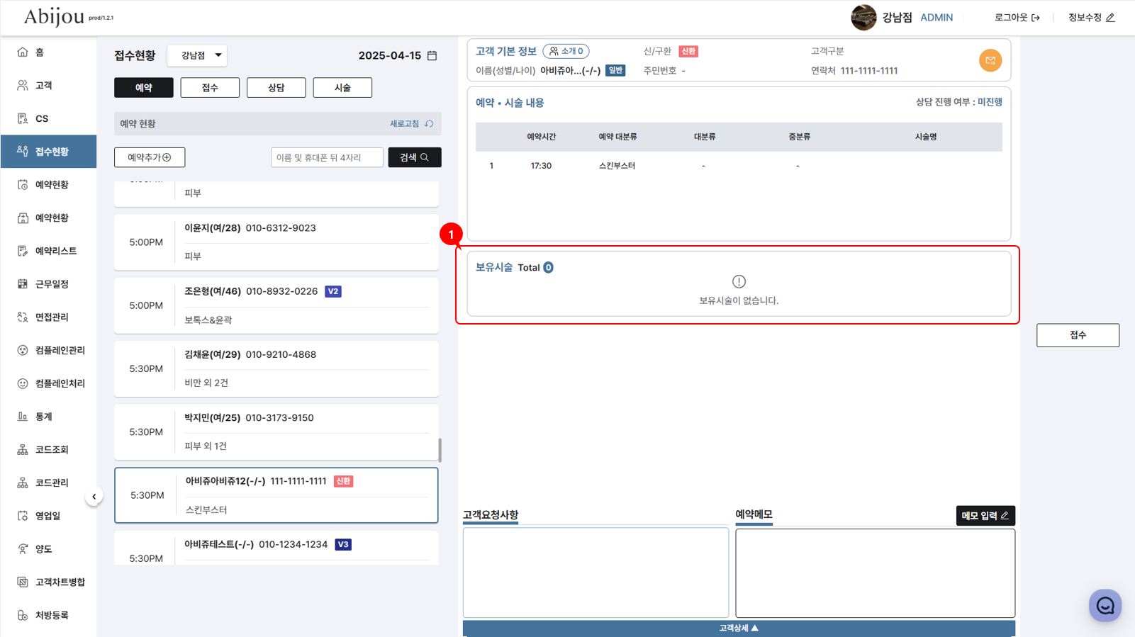 고객의 보유시술 현황을 확인할 수 있습니다.