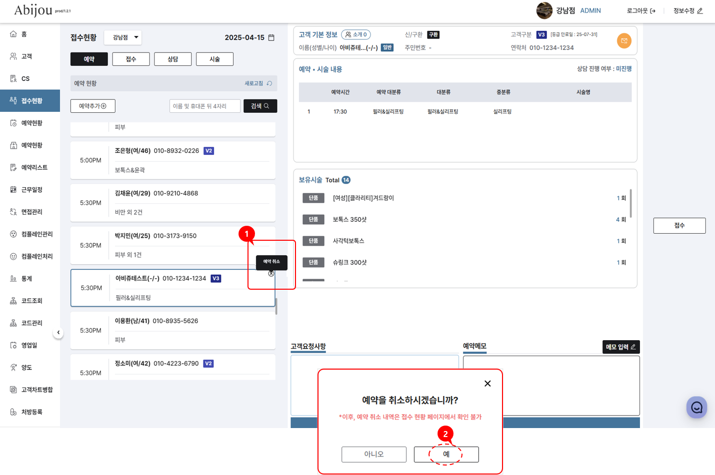예약 고객 예약 취소하기