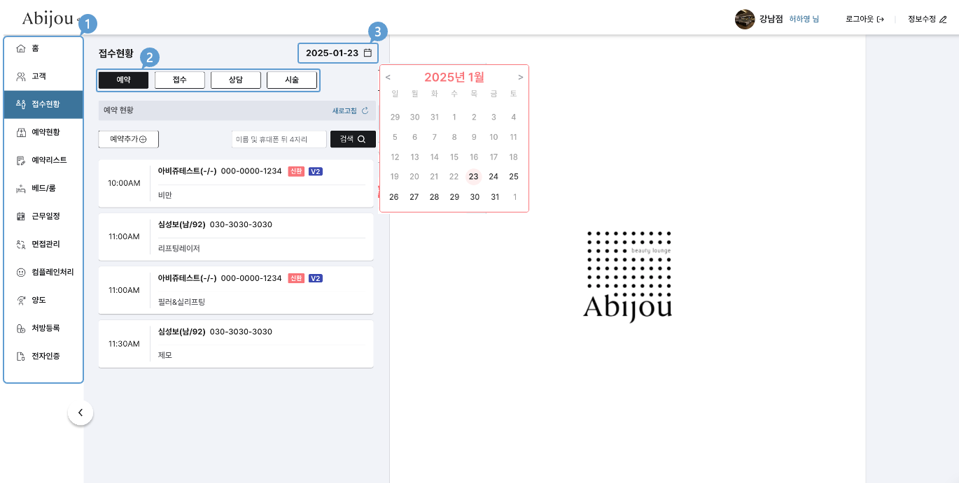 총 4개의 탭으로 구성되어 있습니다. 고객의 접수 상태에 따라 각각의 탭 내 고객 리스트에서 확인 할 수 있습니다.